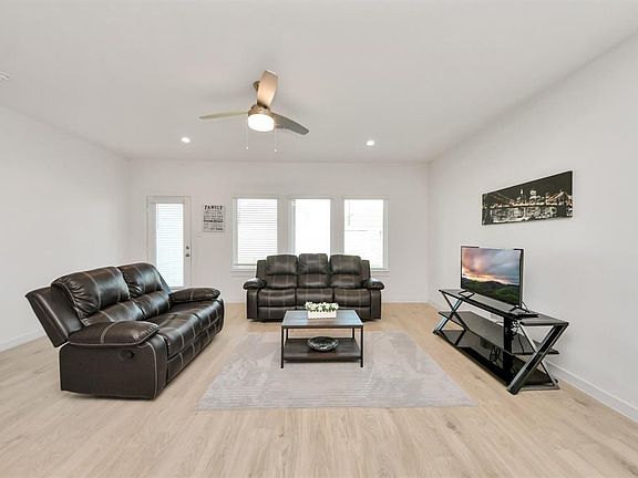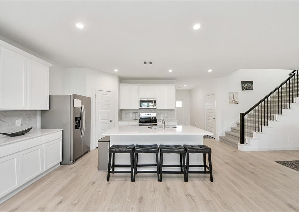 Welcome home to this 2024-built residence, fully furnished and offering 4 bedrooms and 3 bathrooms. From the moment you step inside, you'll notice the sleek flooring throughout and the open-concept layout that creates a bright, inviting atmosphere. The kitchen features light-colored cabinets and countertops, a spacious island that doubles as a breakfast bar, and plenty of room for cooking and entertaining. The primary bedroom is conveniently located on the first floor, providing added privacy from the other bedrooms. Upstairs, you'll find a versatile game room perfect for family nights or a cozy lounge area. Step outside to enjoy the backyard, ideal for summer evenings and outdoor gatherings. This home also comes equipped with an Aquasure whole-home water filtration system, ensuring clean, filtered water throughout the entire property. With optional tasteful furnishings already in place, this home is move-in ready. Don't miss your chance to see it schedule your tour today!