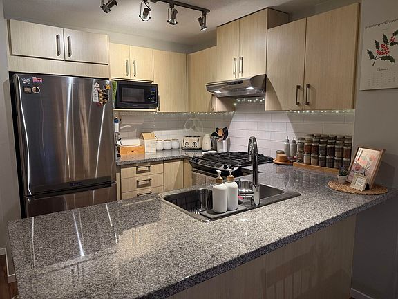 Mountain viewsOpen floorplanLight cabinetryGranite countersStainless steel appliancesGas cooktopLaminate flooring