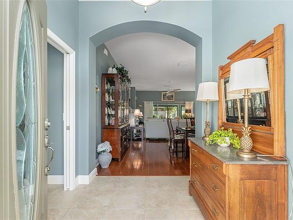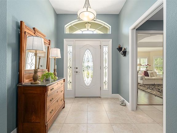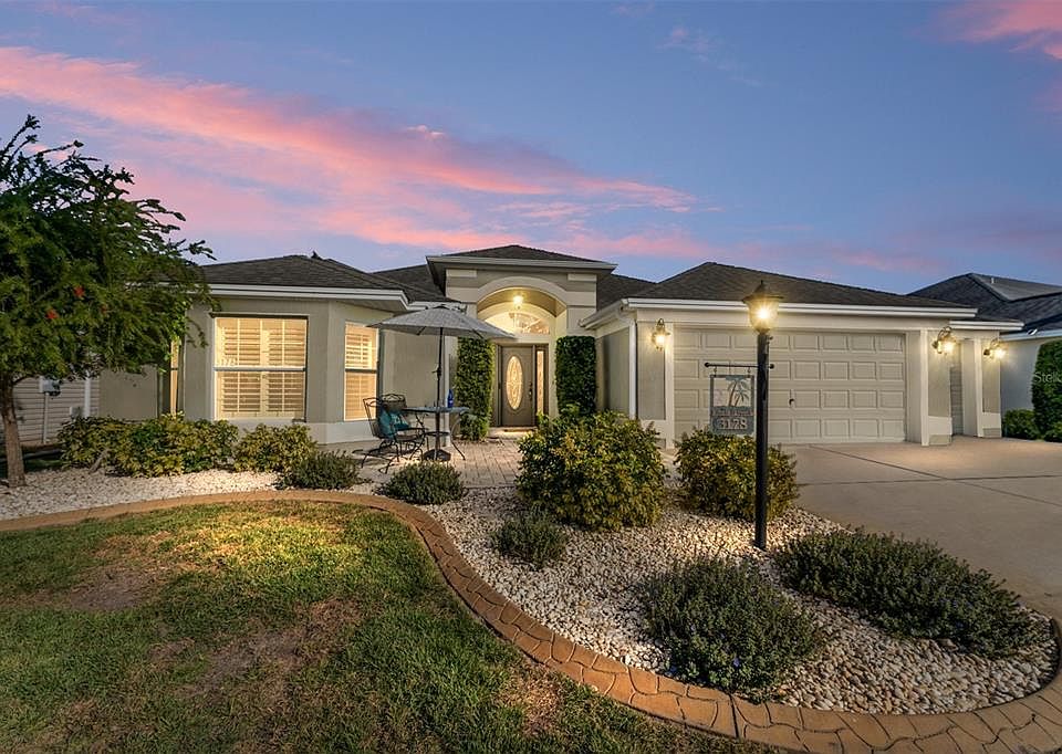 Welcome to this stunning LILY Designer Home located in the highly sought-after Village of Fernandina, ideally located between Lake Sumter Landing and Brownwood Paddock Square. This beautifully designed BLOCK & STUCCO residence offers an open floor plan ideal for entertaining, featuring engineered wood flooring, GRANITE countertops, MAPLE cabinets, stainless steel appliances and abundant natural light throughout. The kitchen flows seamlessly into the dining and living areas, creating the perfect space for gatherings with family and friends. The PRIMARY BATH has a Walk-In-Shower and lots of Closet space. The laundry room design is ideal with its QUARTZ counters, project space and file cabinets. The enclosed lanai has TILED flooring and opens to a patio area with plenty of space for seating and a grill. You will enjoy the convenience of the 2-CAR PLUS GOLF CAR GARAGE, providing ample space for vehicles, storage and your active lifestyle. Don’t miss the opportunity to make this designer LILY model your new home in Florida’s friendliest hometown!
