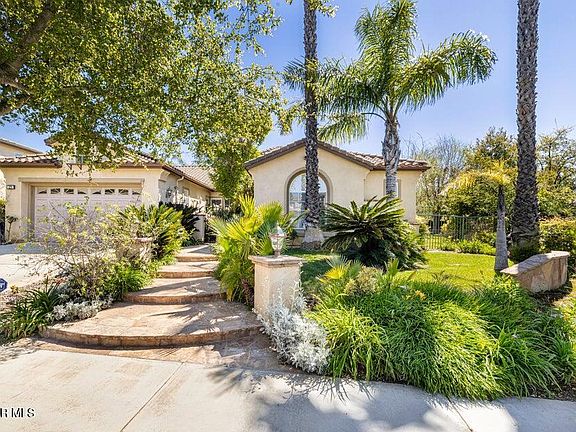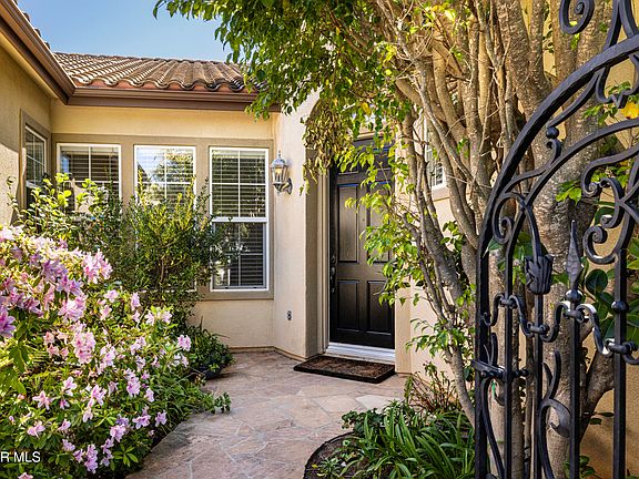 Enter into the 24 hour guard gated community at Woodridge Estates and you step into a calm, lush setting surrounded by beautiful hiking trails and stunning mountain views everywhere. This beautiful newer single-story home with an additional loft area is a true find. This 3,100 sq. ft. home features owned solar panels, an oversized grassy yard, a perfectly placed in ground spa, with a stunning location on the view side of the street. The primary suite with one potential bedroom is on one side of the house with the other two bedrooms with a jack & jill bathroom and powder room on the other. The spacious living space offers a formal living room, office/study area, formal dining room, and a large kitchen that opens to the family room. The high ceilings of this newer home make the home feel even larger than 3100 sq. ft.. The lot size is unusually large for Woodridge Estates and offers so many enjoyment options. Centrally located in Thousand Oaks close to schools, dining and shopping.