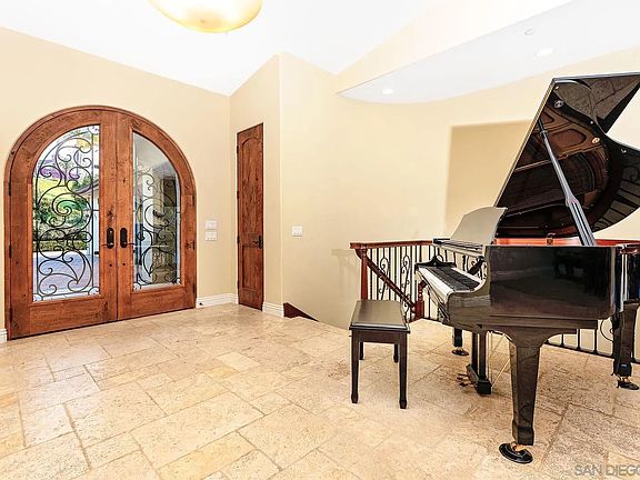 Private oasis in Bonsall, this stunning 4 bed, 4.5 bath home, offers a country lifestyle with modern amenities, high quality hardwood flooring, French wood beamed ceilings throughout, a true chef’s kitchen with Viking appliances & custom wood frame windows, sliders & doors. Built in 2006, this 5304 sqft estate boasts panoramic views from two oversized wraparound decks, and is situated in a private park-like setting with a stream running through the backyard and large boulders adding to the serene atmosphere. On the first floor you will find the primary bedroom retreat complete with his & hers closet & a spa like bathroom, as well as the office/library that could be converted into a 5th bedroom.