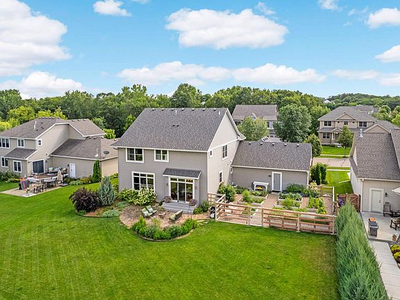 Welcome to 3179 Landon Court in Chaska, where elegance meets charm in this must-see property! This exquisite home offers spacious bedrooms, a thoughtfully designed open floor plan for comfortable living and an outside space that feels like a dream. Step outside into a master gardener's paradise, featuring fenced-in raised gardens with picturesque rock paths. The enchanting paver patio, surrounded by fragrant chamomile and lush gardens, transports you to the serene landscapes of France. Inside, admire the stunning wood floors and custom upgrades throughout, adding a touch of luxury to every corner. Relax on the blue stone paver patio or enjoy a quiet moment on the inviting front porch swing. Nestled just steps away from a local park and scenic walking and mountain bike trails, this home offers the perfect blend of tranquility and adventure. Don’t miss the opportunity to own this slice of paradise at 3179 Landon Court!