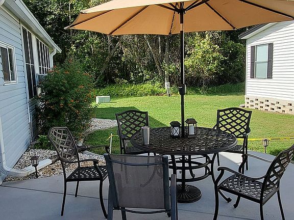 2 bedroom, 2 full bath home backing to nature preserve. Extended driveway with rounded section for table and chairs, lanai with 5 person hot tub to watch deer, turkey etc., large Florida/sun room with sliding windows/screens and hookups for second fridge. Storage shed, landscaping, Rooms are very large. Lighted built-in display cabinets in dining room. All kitchen appliances stay. Fridge, Bosch dishwasher, and disposal less than 2 years old, additional large pantry added, front load washer and dryer included. Leather living room furniture, coffee table, and end tables stay. Master bedroom furniture all stays as does all of the dining room furniture (less than 3 months old), Breakfast nook table and 4 chairs stay as do microwave cart and microwave. Larger Kenmore Elite fridge/freezer in Florida room also stays. The HOA fee is only 10.00 per year per household. Nice clubhouse with pool, hot tub, billiards/game room, card room, library, kitchen, etc. Covered Central mailbox location, near shuffleboards courts and bocce ball court. Lots of nature. You will see lots of deer, wild turkey, otters, sand hill cranes, etc. Also a stocked lake for catch and release.