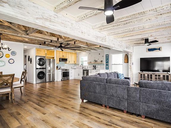 WATERFRONT RELAXATION RETREAT situated in the quiet and quaint fishing village of Hernando Beach. Totally renovated abode boasts expansive 700 sq ft Greatroom with high catherdral shiplap ceiling and a maze of exposed lighted beams and customized kitchen that features modern cabinetry , Granite counters, 36 inch porcelain farm sink, stainless steel appliances , decorative tiled backsplash, with open shelving accents. Comfy living area overlooks the tranquil water with 65" TV. Both Bedrooms fitted with King Size beds and additional TV's. New bath with custom tiled step in shower with glass sliding door. Conveniently located close to the Pine Island Sandy Beach Park & the welcoming restaurants and bars of the quiet laid back community of Hernando Beach. Come and enjoy this fully equipped and decorated retreat for your upmost pleasure. Pets subject to the landlord's approval with an additional pet fee. Rates very depending on time of year and length of stay. In Season Peak Winter rates are 30% higher then current advertised off season rate. Contact us today for your private in person or virtual tour!!