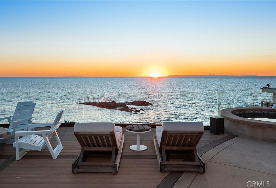 Perched above the pristine Totuava Beach with private steps leading directly to the sand, this gated estate embodies the pinnacle of coastal Orange County luxury. Situated on a rare 21,000-square-foot lot, the property features a newly remodeled main residence and a separate guest house, both designed to maximize breathtaking, unobstructed views of the Pacific Ocean, Catalina Island, and vibrant sunsets. The main residence offers three spacious bedrooms, an open-concept layout, and walls of glass that seamlessly blend indoor and outdoor living, allowing the striking blue waters to serve as your everyday backdrop. Designer finishes elevate every corner, creating a sophisticated yet inviting retreat. The detached guest house is equally impressive, boasting its own private entrance, a full kitchenette, one bedroom, and a beautifully appointed full bathroom. Crafted with the same attention to detail as the main residence, it offers privacy and comfort for guests or extended family. What truly sets this estate apart is the private beach bungalow nestled directly on the sand. Complete with running water and electricity, this one-of-a-kind space is perfect for unwinding after a day by the ocean or entertaining with ease. Outdoor living is a dream with a fire pit, spa, built-in barbecue area, and multiple seating areas designed for gatherings of all sizes. Ample parking is a rare treasure on Laguna Beach's coastline, but this property exceeds expectations with a four car garage and a massive motor court accommodating up to six additional vehicles. From the panoramic views to the luxurious amenities, every detail of this property has been thoughtfully curated for effortless entertaining and serene beachfront living.