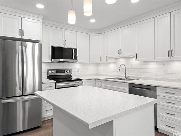 Welcome to #202 - 318 108th Street in Sutherland! If you’re seeking a brand new condo in a prime location near the University of Saskatchewan and the upcoming SaskPolytech, this might be the perfect fit for you! Featuring light grey walls, barnwood-style vinyl plank flooring, and crisp white cabinets, this unit boasts a timeless color palette. This second-floor corner unit offers two spacious bedrooms, one of which includes a convenient 2pc ensuite. Upon entering the suite, you'll be greeted by a generous foyer complete with a large front entry closet. The kitchen is equipped with plenty of cabinetry, brand new stainless steel appliances, and an island featuring stylish pendant lighting. From the dining area, you can access a balcony that includes a natural gas BBQ hookup. The living area is filled with natural light, thanks to an abundance of windows facing a peaceful residential area. This home features vinyl plank flooring throughout the primary living spaces and bedrooms, while the entryway and bathrooms are finished with linoleum for easy maintenance. Please note that some minor touch-ups are still in progress, but everything will be finished before the possession date! Call your favorite Realtor® today to take a look at this lovely condo!