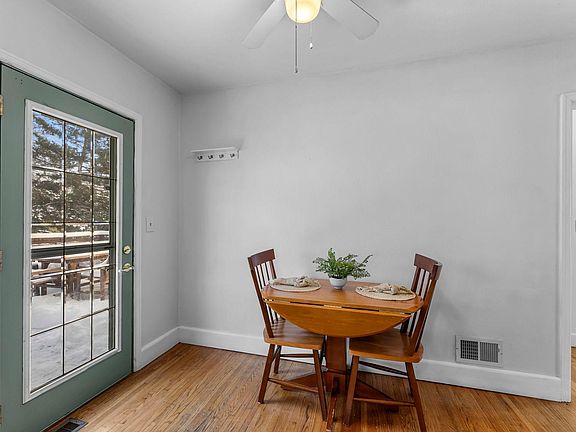 Close to parks, Soldiers Field Golf Course, major roadways, and just minutes from downtown. Warm, inviting entry opens to the living room with timeless hardwood floors and abundant natural light. Informal dining area has deck access for easy indoor–outdoor living. Stylish kitchen with ample cabinetry and new stainless steel appliances (2023). Two main-level bedrooms offer hardwood floors, natural light, and ceiling fans for comfort. Nearby full bath with rain shower, vanity, and hall closet for plenty of storage.