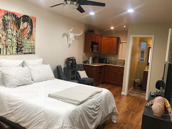 kitchenette / full bath/ fresh paint/ hardwood floor/one car garage parking in an extra-large garage with tons of storage/ washer & Dryer
