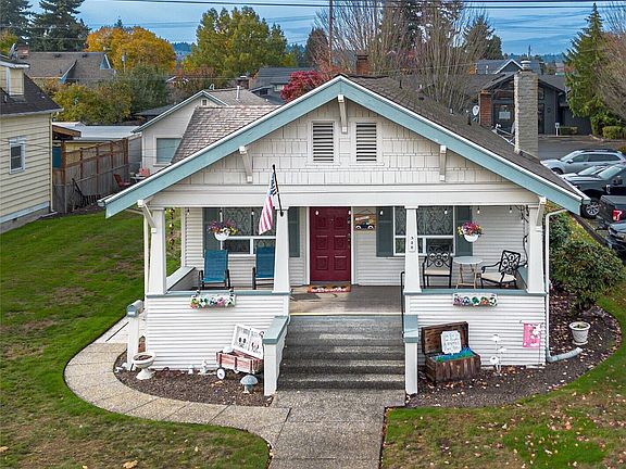 Gorgeous updated home in sought after Puyallup location w/DADU! Walking distance to SOUNDER, Farmer's Market, Fairgrounds, Restaurants, and more. Enjoy coffee on your huge front porch w/views of Mt Rainier.All the character you are looking for in a 1920's home w/new designer carpet and light fixtures, large mantel and cozy gas FP. New LVP flooring throughout. Tons of natural light w/views of Mt Rainier in dining rm and kitchen nook. Huge primary suite features 2 closets and ALL-NEW bthrm w/custom tile shower and double vanity.Main Bth has new quartz countertop and Custom Tile Shower. Basement perfect for extra storage or gaming rm? New Panel & Electrical throughout. The 1bd-1bth DADU is great for Multi-generational living, AIRBNB or rental!