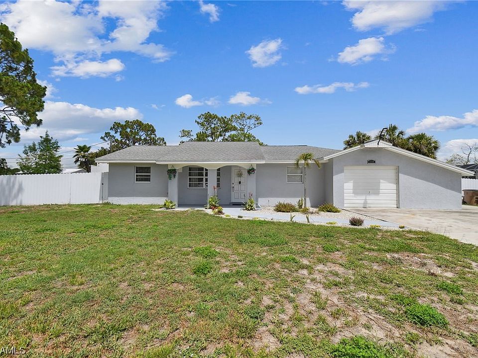 A one-car garage, with an utility room that is not finished, offers a potential for additional living space. Extra storage is available in the garden shed. For added convenience, there is a separate laundry room. The home features an extra-wide driveway, allowing for boat or RV parking. The property sits on almost a half-acre of land, providing ample space for a pool or any other desired additions. The rear fence was recently installed 2023. For peace of mind, the septic tank was pumped out less than a month ago.