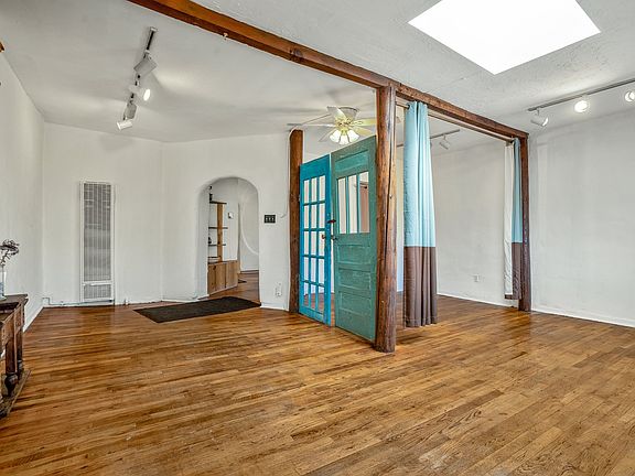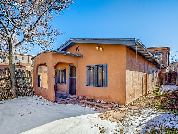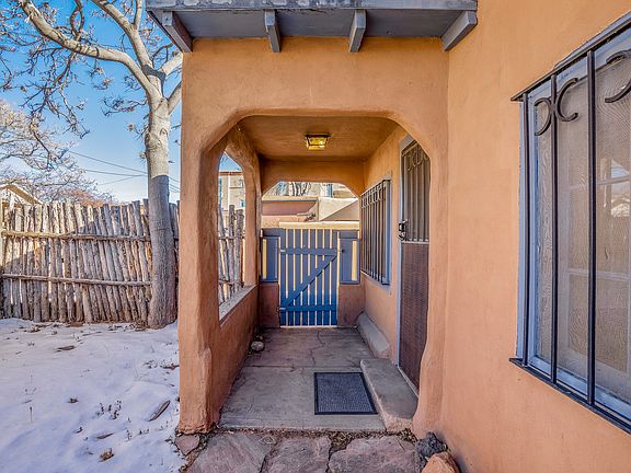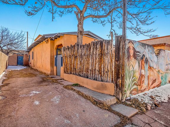 This unique property, with its iconic muraled wall, is located just off Guadalupe street in the heart of the Railyard District. With two separate dwellings and a detached studio, it offers both residential and commercial (BCD) zoning, creating tremendous flexibility of use. The front unit was once used as a retail store by its current owners, but has also been used as a successful residential rental. With beautiful wooden floors, white walls, creative design features, arched doorways and plenty of natural light, it is the perfect setting for a shop or gallery. Or, set it up as an open living space and bedroom. The options are endless. The front unit also has a kitchen, a ¾ bath and a laundry room. A side driveway with room for 2-3 cars, parked in tandem, leads to a large brick patio, the rear unit and the studio. The rear unit lower level features a kitchen, breakfast nook, a small bedroom or office and a living space with a kiva fireplace and ¾ bath. A spiral staircase leads to a loft area that can be used as a bedroom or office and a rooftop deck with great views of the city and the Sangre De Cristo mountains. A separate one-room, heated studio is located off the rear patio. This space would be perfect for an artist’s studio or gallery. This property is so unique and the flexibility of residential or commercial zoning combined with its Railyard location makes it a home run.