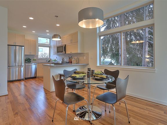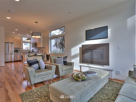 Exceptional new Fremont/Ballard Townhomes close to all the fun in funky Fremont. Custom designer features thru-out Main level features chef's-delight kitchen w/quartz counters, SS appliances, custom tile work, light-filled dining and living rms, w/firepl, hardwood floors, open staircase to upper level. Plush Master Suite w.walk-in shower, designer tile work, large closet. Enjoy the sweeping views from spacious roof top deck. Off street parking