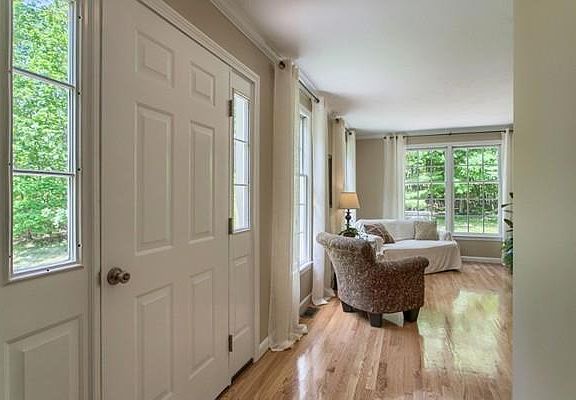 Sunlit - light filled - Cape style home. This house has been cleaned, painted and polished for sale! You will love the versatile floor plan with the big eat-in kitchen with maple cabinets, new solid surface countertops with tile backsplash, propane fireplace, newly refinished hardwoods and newer appliances. Dining room and/or office with hardwood floors. Oversized living room with wood burning fireplace, new ceiling fans, fresh interior paint and refinished hardwoods. Big family room addition (2008) with cathedrals, atrium door, lots of windows, hardwoods and propane fireplace. 2 furnaces - less than 1 year old. Hot water heater 2016. Enjoy outdoor living space on the 40' deck overlooking beautiful back-yard. Lower level family room plus storage/workshop area and laundry. Almost the entire house has fresh interior paint and refinished hardwood floors. Verizon DSL line will be transferred to new owner. Title V