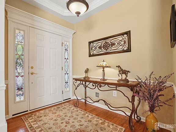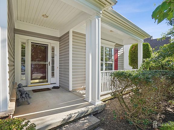Welcome to this gorgeous Brighton 2 bedroom home in Somerset Run! First you will notice the paver driveway, and charming covered front porch. Step into the foyer and notice the beautiful tray ceiling, setting the tone for the craftsmanship found throughout. Gleaming hardwood floors, crown molding, and recessed lighting enhance the open living and dining areas, perfect for entertaining or quiet evenings at home. The gourmet eat-in kitchen features upgraded tile flooring, granite counters, tile backsplash, upgraded rich cabinetry, and stainless steel appliances. It flows seamlessly into the family room with vaulted ceilings and a ceiling fan, then into the sunroom with windows on three sides overlooking lush landscaping. Step through the glass sliders to the paver patio (also an upgrade) an ideal spot to relax with a book or morning coffee. Inside, down the hall, you'll find a spacious second bedroom, full bath, laundry room, and the fabulous primary suite. The enormous primary retreat boasts a tray ceiling, closet, and a luxurious bath with dual vanities, stall shower, and a jetted soaking tub. Enjoy comfort, convenience, and a vibrant lifestyle in this premier adult community! Somerset Run offers a vibrant lifestyle with a clubhouse, indoor/outdoor pools, fitness center, tennis, pickleball, bocce, dining room, ballroom, and a wide range of clubs and activities.
