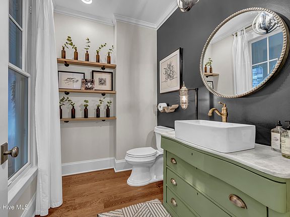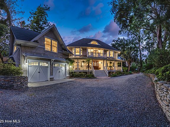 Cabbage Inlet Lane off of Masonboro Sound Road is a treasured location about 20 minutes from Wrightsville Beach and 20 minutes from Carolina/Kure Beaches. Winding your way through centuries old live oaks, you will arrive at the crushed stone drive with dry stacked stone walls to arrive at the Cape Cod inspired cedar shake residence. The tasteful combination of classic lines and quality materials including brick, clapboard, standing seam metal with all the modern conveniences like trex exterior porch decking, wide plank white oak hardwood flooring throughout the 3 upper floors (24x24 ceramic tile on the ground floor) , granite counters in the kitchen and baths and an elevator all point to the thoughtful attention to detail and craftsmanship. As you approach the home, you will immediately be struck with curved eye brow dormer above sweeping covered porch and the one of a kind mahogany gothic design front door. As you step across the threshold you feel the welcoming warmth of the wood flooring and staircase detail. An open floor plan includes a chef's kitchen with center island and sunny breakfast /morning room, a large dining area and 24x18 great room anchored by a masonry fireplace. With oversized Andersen windows, you will be drawn to the back covered porch with broken views of Whiskey Creek. Additional bells and whistles on this floor include custom built-ins, raised panel wainscoting, stainless appliances including a gas 8 burner cooktop with dual ovens and warming drawers and Subzero refrigerator/freezer, 2 undermount sinks plus a third bar sink and wine cooler. The lower level ground floor features another open plan with 23x15 den and 15x14 flex space, an 18x17 bedroom with private bath and walk-in closet. The floor above the main floor includes a gracious master suite, lounge and 2 bedrooms each with bath ensuite. The top floor will be the envy of your family and friends as it is the most incredible home office/ flex space with custom built-ins. The perfect spot to let your inner artist out and be creative, host zoom calls or just relax in the top floor tree house! As if the main house were not enough, don't miss the detached guest suite with full bath over the 2 car garage. Total square footage including the detached suite/guest apartment is 5,553 (Main house is just over 5,000 sq ft and guest apartment is 549 sq ft.) This one of a kind residence will not disappoint. When only the best will do!