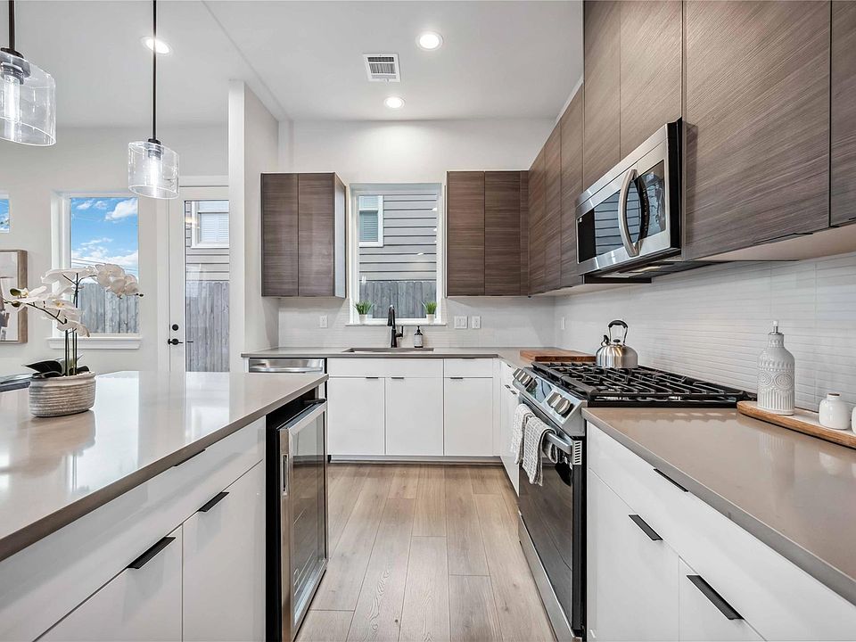 Private backyardStainless steel appliancesOwn drivewayBeautiful quartz countertopsWine chillerWalk-in closetAbundant counter space