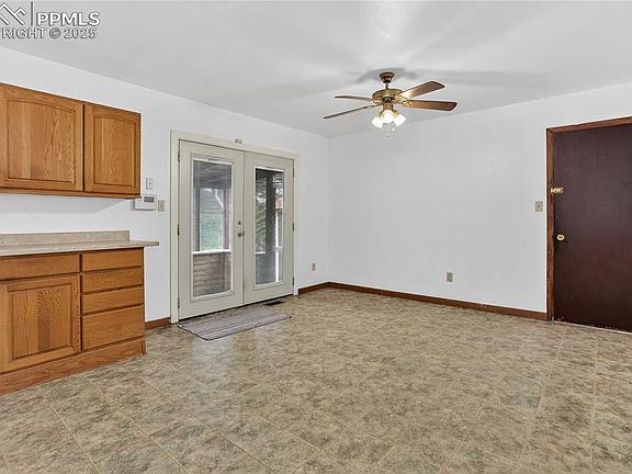 Welcome to this inviting ranch-style home in the heart of Widefield Country Club Estates. Thoughtfully maintained, this property blends comfort and convenience with easy access to parks, schools, and major roadways. Inside, the living room features cozy carpeting with original hardwood beneath through the whole main living room and hall, while the kitchen offers a dining area, gas cooktop, and French doors leading to a covered patio—perfect for outdoor dining or relaxing in the shade of mature trees. All three bedrooms include hardwood floors, and the remodeled bath showcases a new vanity, tub/shower, and flooring. The fenced backyard offers privacy, space to garden, and fruit trees that keep a touch of nature at hand. Additional features include a surround-sound system, an evaporative cooler, and a security system. Major updates include new gutters and roof in 2019, as well as a new garbage disposal and sewer line in 2020. Nestled near the community park, Widefield Country Club, and the scenic Bluestem Prairie Open Space, this home offers endless opportunities for outdoor recreation and Colorado living. With all school levels within minutes, and convenient access to both eastern and western thoroughfares, the location perfectly balances neighborhood charm with everyday practicality.