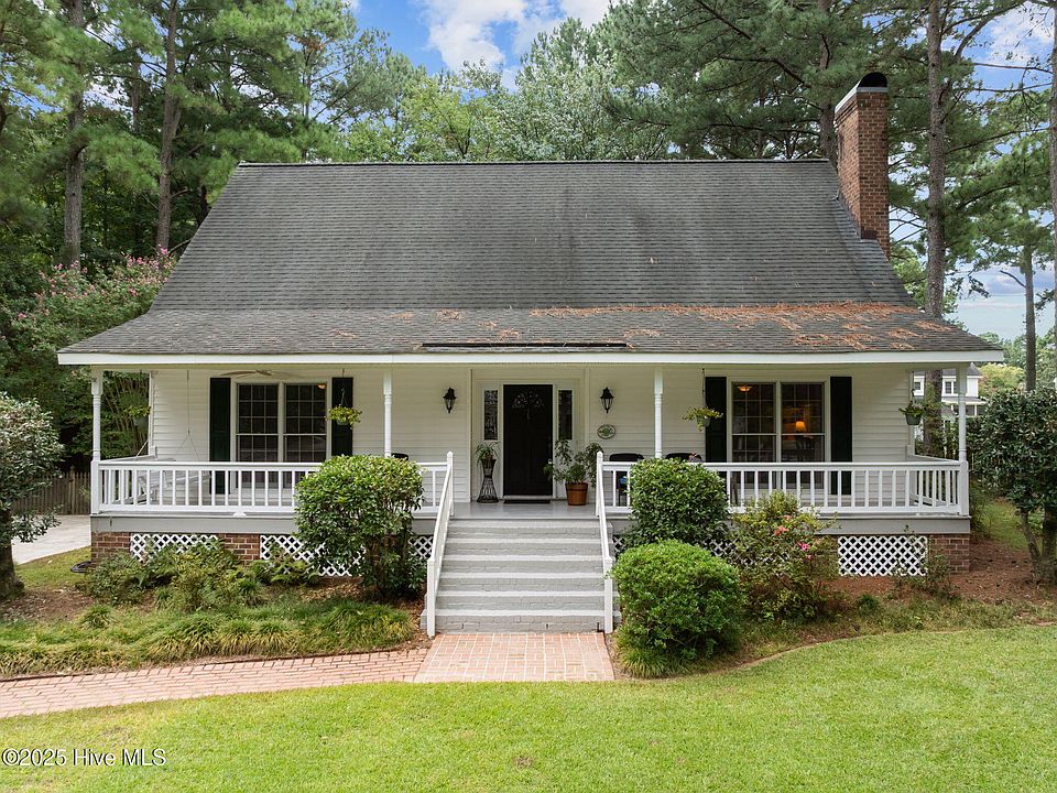 Welcome to this charming 4-bedroom, 2-bathroom home in the desirable Lynndale neighborhood of Greenville, NC. From the moment you arrive, the spacious front porch with its inviting bench swing sets the tone for comfort and relaxation. Step inside to find beautiful hardwood flooring throughout the entryway, with the living room to your right featuring built-in shelves and a white brick fireplace. Flowing from the living room is a bright dining room with large windows overlooking the backyard. The kitchen boasts stainless steel appliances and connects seamlessly to a cozy breakfast nook and the sunroom, offering abundant natural light. A convenient laundry room is also located downstairs. The primary suite on the main level with a double vanity bath, walk-in shower, and ample closet space. Upstairs, you'll find three additional bedrooms and a full bath complete with double vanities and a separate shower/toilet room. Enjoy the outdoors in the stunning sunroom that leads to the large fenced-in backyard, perfect for entertaining, gardening, or relaxing. A storage shed adds even more functionality. This Lynndale gem combines charm, space, and convenience; all in a prime location close to schools, shopping, and dining.