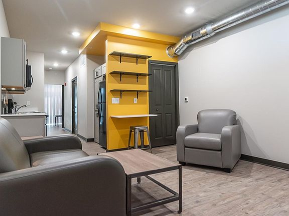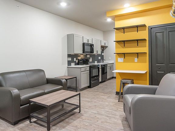 Some G3 apartments are furnished with a full-size, XL extra-height bedframe (room for storage underneath), dresser, nightstand, love seat, living room chair, coffee table and end table. Residents supply their own mattress.