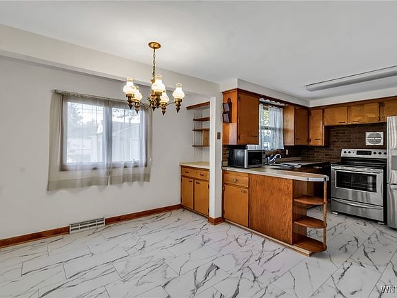 Welcome To Town of Tonawanda featuring 4 bedrooms 1 1/2 baths, and a full basement. This basement has an ample amount of storage, with a rec room, work area and laundry area. This home could be move in ready with some minor updating. Two bedrooms on the first floor with a full bath. 2 bedrooms on the second floor with the possibility of another bedroom half bath on the second floor. Original hardwood floors throughout the home. Some of the updates include interior painting all rooms, new carpeting in upstairs bedroom and new luxury vinyl Kitchen floor. Concrete driveway leading to a backyard with standalone shed and detached garage