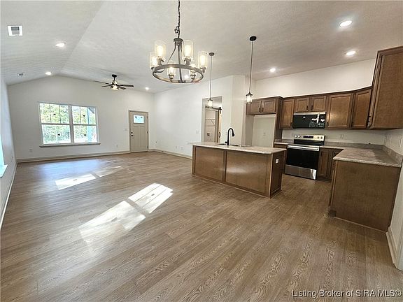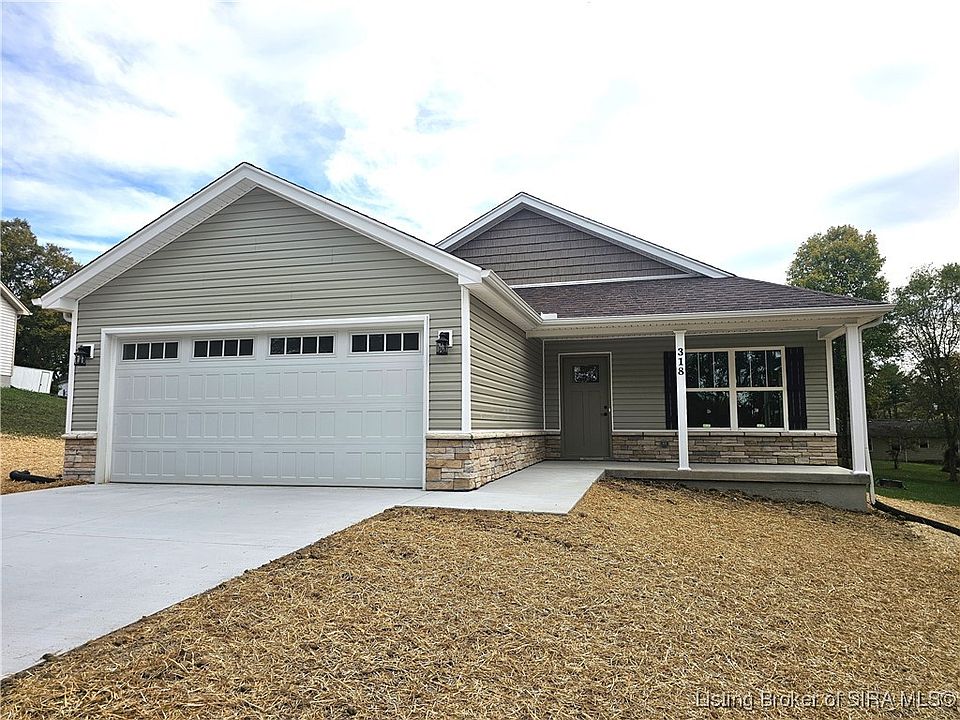 Sitting on 0.67 Acres with NO RESTRICTIONS! Mainstream FIBER OPTIC AVAILABLE, tapped into CITY SEWER AND WATER! North Harrison schools. This brand-new home is nestled in the heart of Milltown. This is your opportunity to become part of a community where time & worries seem to float away. Greeting you with TALL CEILINGS and an OPEN FLOOR PLAN, 3-Bedrooms, and 2 FULL Bathrooms, you can make this home yours! LUXURY VINYL PLANK FLOORS flow effortlessly through the large GREAT ROOM that opens to the EAT-IN KITCHEN which includes stainless steel dishwasher, range, & microwave. Main Bedroom includes a PRIVATE EN SUITE with BARN DOOR, DOUBLE BOWL VANITY, WALK-IN SHOWER, & WALK-IN CLOSET. Enjoy your days & evenings on the COVERED FRONT PORCH OR COVERED REAR PATIO basking in nature and the PEACEFUL VIEWS that surround you! Known for its rich outdoor atmosphere, fishing, wading, kayaking, & canoeing are within minutes of your home here. Cave Country Canoes & the Blue River only 1/2 mile away. Enjoy a laidback lifestyle with car shows, summer concert series, dinner on the bridge, bridge lighting events, coffee & ice cream shop, art shows, & a local general store. Just a few things that make this community so special! Utilities: Fiber Optic with Mainstream; Duke Electric; Blue River Regional Water. Legal address is Depauw, located within Milltown City Limits. Gravel area in front of homes will be paved in November.
