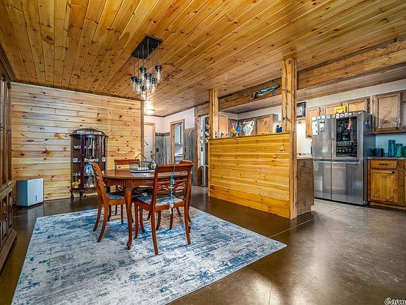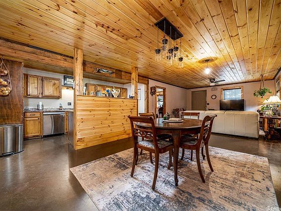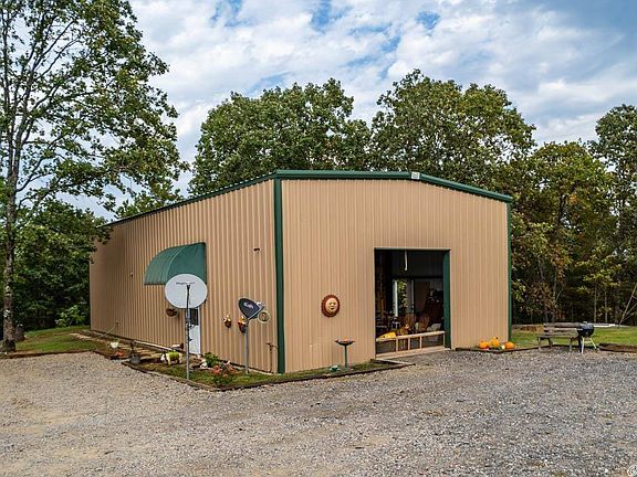 30x60 shop w 16 ft height wall & 12.5 inch thick walls w a 1200sf 1BR/1BA home inside. Fire retardant triple insulation, window unit heat & air, LED lights, knotty pine ceiling boards, crown molding is walnut, Spanish oak cabinets in kitchen on 10.67 ac. There is a wet weather creek, tons of trees and deer! Appliances will be replaced w black appliances - agent can provide photos. Area over home has a stair case and is plumbed & easily converted to more living space