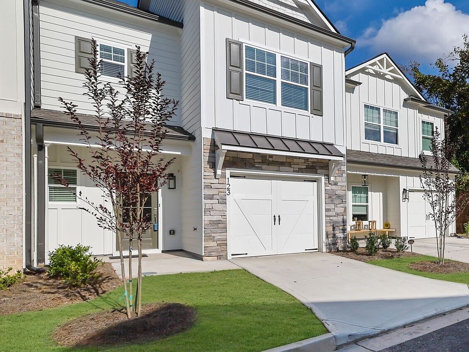 Brand-new Craftsman-inspired townhomes in charming Ball Ground! Thoughtfully designed open-concept floor plans feature spacious main levels with rear stairs and stylish kitchens showcasing quartz countertops and 42" soft-close cabinetry. Upstairs offers a generous primary suite, two secondary bedrooms, and convenient laundry. The homes are northeast facing, offering bright morning light throughout the main living areas. Enjoy walkability to downtown Ball Ground's shops, restaurants, and Botanical Gardens-plus easy access to Riverstone in Canton and Northside Cherokee Hospital, all within the sought-after Creekview High School District. Community amenities include a cozy firepit gathering area. Low maintenance living with upgraded features throughout. Ready November! Photos are of another completed home in Valley Park. No rent restrictions! More than a townhome, it's a lifestyle!