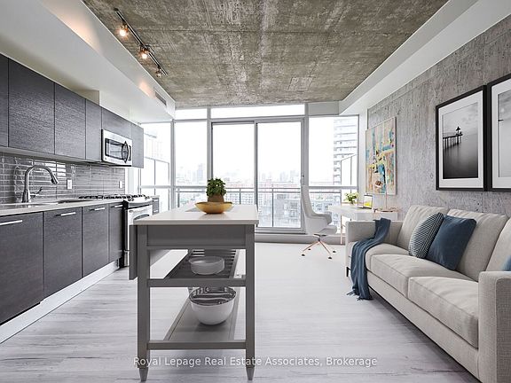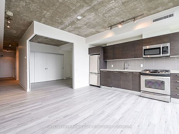 Stunning condo in highly sought after King East building with a large living area perfectly designed for a desk/at home workstation. This unit boasts brand new luxury vinyl flooring throughout, floor to ceiling windows, and tons of natural light. S/S appliances. Double closet in hall and bedroom. Beautiful stone counter in kitchen with chefs gas stove. Concierge. You can ride or walk to the Distillery District and St. Lawrence Market, just minutes away. TTC at the front door! Amazing location! Close to bars, shops, restaurants. Spacious balcony w/ gas bbq hookup. Access to party room. Tenant to pay utilities. One (1) Parking spot available for rent ($250/month). Locker included. Hot water tank rental ($39/month)