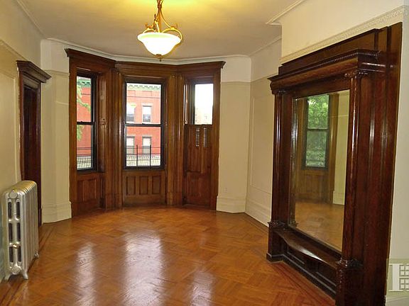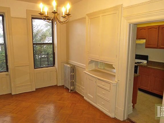 Large & LovelySprawling and meticulously maintained two bedroom on the 2nd/ top floor of a Lefferts Gardens limestone on Maple Street. The living room, with a mirrored mantel, has a bay window with views of a pretty flower garden. The large kitchen is separate and there is a formal dining room too. The woodwork is spectacular including working pocket doors, a mirrored parlor mantel, oak floors and wainscoting. The entry foyer is impressive in detail and design. Current tenants loved living here and speak highly of the onsite landlords. Sorry no pets or smoking. Close to the 2 & 5 trains at Sterling Street. Available November 1st.