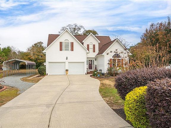 This beautiful home is tucked in the rear of a cul-de-sac & the lot size spans over .70 acres. With a double car garage and a carport, the options for parking at your new home, abound! The landscaped walked way is a introduction to the open foyer and the primary suite is directly at the front of the home for convenience. The living room is warmed by gas logs and leads into the formal dining room, and into the open kitchen. Upstairs, there are two bedrooms, a bonus room and a bathroom with two sinks situated opposite each other for convenience. The catwalk stairway allows you to keep an eye down below while moving about the ample storage closets and wide hallways upstairs. The backyard is no exception to the meticulous care and design this home brings with a permanent gazebo, garden and storage shed. The privacy of this backyard is unmatched! With a new roof installed in 2018, granite kitchen countertops and custom tile work, the improvements are just waiting for your special touch!