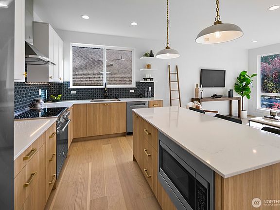 Anchoring a brand-new Greenwood micro-community, this 5-bedroom home blends refined comfort with thoughtful entertaining. A large, sunlit main floor links living and dining to a cook’s kitchen highlighted by a Bertazzoni induction range; sliders open to a covered deck, an all-season perch for alfresco meals. Upstairs, the primary retreat adds built-in bath cabinetry and a walk-in closet lined with custom shelving, joined by an additional bedroom and a den; two more bedrooms on the lower level create comfortable separation. An attached garage offers private, off-street parking and storage. Moments to Greenwood favorites, like Coyle’s Bakeshop, Chuck’s Hop Shop, and FlintCreek Cattle Co, near Green Lake and Woodland Park Zoo.A must see!