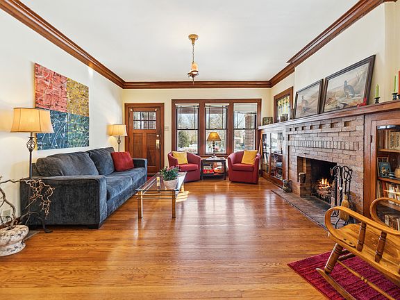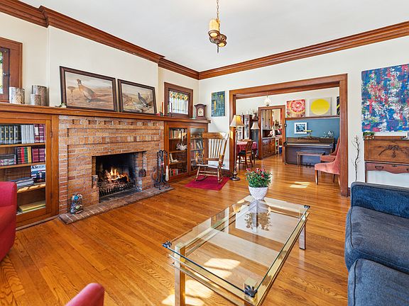 From the moment in walk in, you know this is home is the one! Home has amazing vintage charm galore. This four spacious bedrooms 2.5 baths has been well cared for, two bedrooms up/two on 1st level with den. Stunning hardwood floors through-out the home, elegant moldings, original oak trim around windows, doors and entry ways. Living room has brick gas fireplace with built-in oak book cases on both sides and stain glass windows. Formal dining room has built-in cabinet also. Kitchen with plenty of cabinet space and stainless steel appliances. Second floor has walk-in closets and second full bathroom with shower. So much closet space. Full basement with tons of storage areas and half bath. Overhead sewers. Spacious back yard with paver bricks. two car garage. Great for entertaining. This home is in a ideal location, near parks, steps to City of Elmhurst, Berens park. This lovely home is situated on a 75 x 170 lot size.