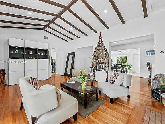 Beautifully updated 3-bedroom,2-bathroom home that perfectly blends historic charm w/modern elegance. (1850 +/- square feet under air) Set on a peaceful, tree-lined street, the home features original hardwood floors, a cozy fireplace, impact windows/doors, and a spacious,light-filled layout ideal for both relaxing and entertaining. The gourmet kitchen is equipped with quartz countertops, stainless appliances +a stylish breakfast bar. Outside, a fully walled backyard offers lush landscaping, a serene patio area + total privacy. Attached 2-car garage and separate laundry/utility room. Roof (2018). This home is within walking distance from the MS Shores Country Club,top rated schools, tennis/pickleball, MS aquatic center+ downtown Miami Shores restaurants + shops. No flood insurance required!
