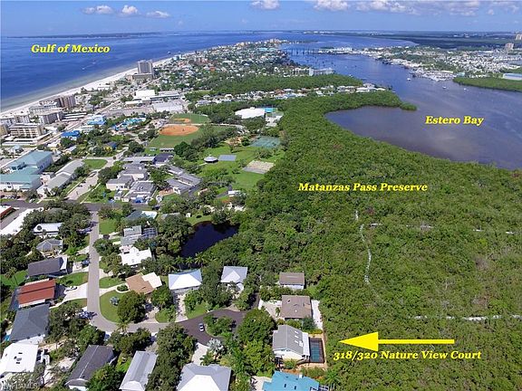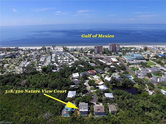 Beautifully updated to a high standard in 2014/2015, this turnkey furnished and tastefully decorated great duplex with pool in a weekly rental zone has it all! The windows and sliding doors in both units are impact resistant. The lower 2BR/2BA unit has tiled floors and an updated kitchen with SS appliances, granite countertops, and a lighted tray ceiling. Both baths have been nicely updated. The 2-story upper unit has 3BR and 3BA. There's a full bath on the first level and both upper level BR have en-suite baths. The quality scraped flooring, high beamed ceiling and a fireplace make this open concept main living area quite unique. A decorative shiplap wall adds a very nice touch. The 2 sets of sliding doors, along with skylights, make this soaring room really bright. The spacious kitchen features elegant cabinetry, granite countertops, tiled backsplash, SS appliances & a breakfast bar. All 3 upper unit baths have been completely updated as well. The large caged pool has a waterfall feature and a sunning shelf. The nicely landscaped property has a wood privacy fence and adjoins Matanzas Pass Preserve. Our beautiful beach is just a quick walk away! Great rental property!