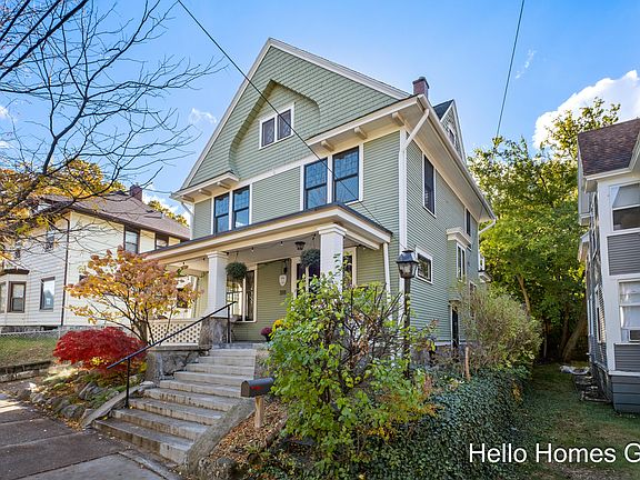Say ''Hello!'' to this stunning 4 bedroom, 2.5 bath Heritage Hill beauty just steps from Pleasant Park and within walking distance to shops and restaurants, including Wealthy Street Bakery, Donkey, and the Downtown Market. A large front porch welcomes you into a spacious foyer, where you'll immediately notice the original wood trim, refinished hardwood floors, and NEW wood windows throughout. The living room features oversized windows and flows into the dining room with beautiful beamed ceilings. The updated kitchen offers a tin ceiling, wood cabinets, butcher block countertops, stainless steel appliances, and a farmhouse sink, with a walk-in pantry and half bath completing the main level. Upstairs, the spacious primary bedroom is joined by three additional bedrooms and a charming full bath with a clawfoot tub/shower. The unfinished attic offers potential for future living space or extra storage. The finished basement adds incredible versatility with a full second kitchen, living area, non-conforming bedroom, full bath, and laundry room, ideal for guests or a private retreat. Enjoy the large fenced backyard and one-stall garage. Don't miss your chance to own this thoughtfully updated home blending historic charm with modern comfort. Schedule your showing today!