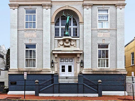 Experience luxury living in the heart of Old Town with this sophisticated 2-bedroom, 2-bath Prince Street condo. Originally part of the historic Alexandria Elks Lodge established in 1910, this property offers a unique blend of history and modern convenience. The building’s rich history is evident in its elegant architecture. The iconic bronze Elk sculpture, crafted in Salem, Ohio, remains as a testament to its storied past. In 1980, developers transformed the building into today’s luxurious residences. This inviting end unit boasts expansive tall windows on the front and west sides, ensuring privacy and an abundance of natural light. The dramatic living room features soaring 16’ ceilings accented by elegant columns, a decorative fireplace mantel, and hardwood floors that flow seamlessly through the main living areas. The updated kitchen is equipped with ample cabinetry, granite counters, and stainless appliances, perfect for culinary enthusiasts. The primary suite offers a serene retreat with hardwood floors, abundant closets, handsome millwork, a tray ceiling, and an updated bath with a seamless glass shower. A spacious family room, complete with custom built-ins, provides a versatile space that can easily serve as an office or entertainment area. Step outside to enjoy a private brick patio, ideal for grilling or al fresco dining. Garage parking for one car conveys. This Prince Street condo is more than just a home; it's a lifestyle opportunity to immerse yourself in the rich history and vibrant Old Town community.