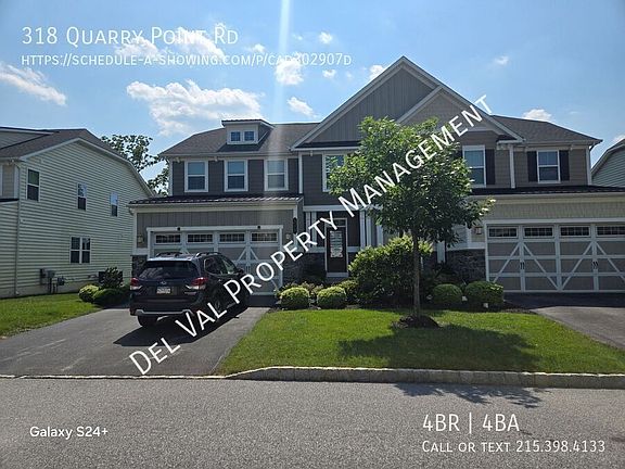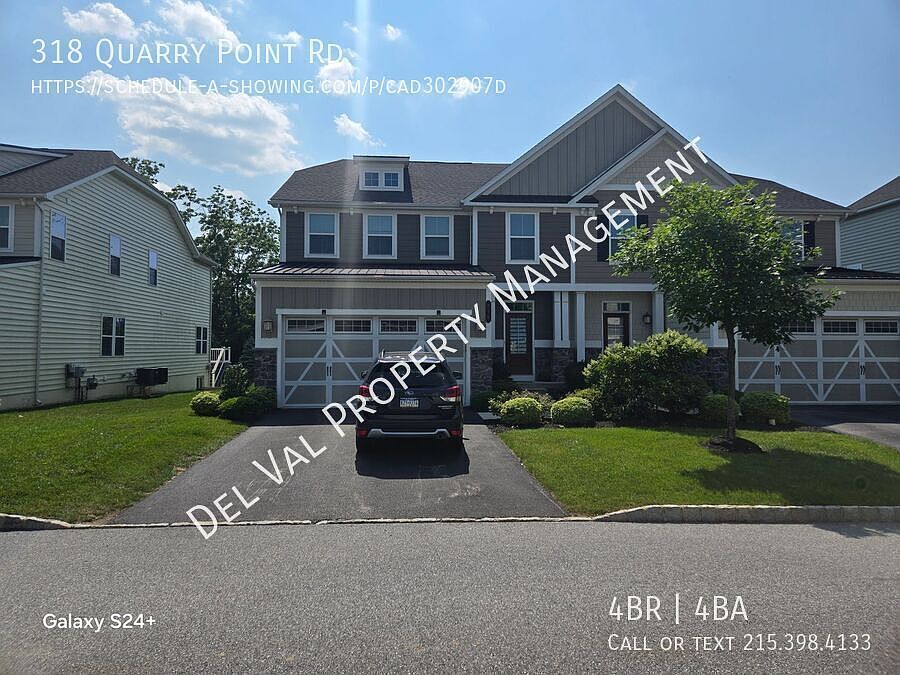 Stunning 4-Bedroom Luxury Townhome with Premium Finishes in Malvern's Prestigious Atwater Community Ready to Move In! Address: 318 Quarry Point Road, Malvern, PA 19355 Details: 4 Bedrooms | 4 Bathrooms | Rent + Utilities Experience luxury living in this spacious 3,768 sq ft townhome located in the exclusive Atwater community. Built in 2017, this home combines elegance, comfort, and convenience in the highly rated Great Valley School District. Perfectly situated near King of Prussia's premier shopping and dining destinations, with easy access to Routes 202, 422, and the Pennsylvania Turnpike, this location provides everything you need right at your doorstep. Features You'll Love Built in 2017 with premium finishes throughout Spacious open-concept living areas with abundant natural light Gourmet kitchen with premium cabinetry, granite countertops, high-end stainless steel appliances, large center island, and generous pantry space Four luxurious bedrooms, including a master suite with sitting area, walk-in closet, and spa-like en-suite bath Ample closet space and large windows throughout Premium Amenities Four full bathrooms, including a luxury master bath Convenient laundry room Private deck with pergola overlooking peaceful woods Attached garage with additional storage End-unit design for privacy and natural light Fireplace for winter months Modern HVAC system for year-round comfort Community Highlights Atwater amenities include playgrounds, a dog park, and direct access to Valley Creek Park Trail Convenient community entrance with Wawa, daycare, and restaurants Just minutes from Wegmans, Target, Aldi, King of Prussia Mall, King of Prussia Town Center, and Valley Forge National Historical Park Easy access to SEPTA Regional Rail, major highways, Penn State Great Valley, CHOP, and more Application Details $65 non-refundable application fee $25 lease administration fee Move-in costs: First month's rent + one month's security deposit Income, credit, rental, and employment history verified Bonus This rental includes Del Val's Resident Benefits Program: Online rent payments Utility concierge service One-time late/NSF fee forgiveness Pet Policy: Small pets (up to 20 lbs) welcome with approval. Listed by: Del Val Realty & Property Management 49 E. Lancaster Avenue, Suite 300, Malvern, PA 19355