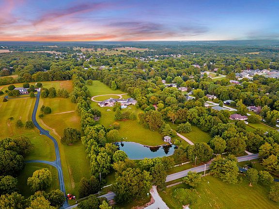 Classic elegance meets modern luxury on nearly 10 gated acres in one of Springfield's most coveted locations. Designed for those who demand excellence in every detail, this 7,405 SF estate offers an unmatched blend of sophistication, privacy, and resort-style amenities. The estate features 5 generously appointed bedrooms, each with its own private en-suite, along with 6.5 lavish bathrooms. Impeccable craftsmanship is on full display with 8-foot solid doors, travertine tile flooring, commercial-grade synthetic stucco and stone exterior, and 2x6 construction throughout. Step inside to a dramatic grand foyer with a sweeping staircase and a wall of windows that bathes the home in natural light. The formal living room boasts a see-through fireplace, one of five gas fireplaces found throughout the home. Entertain with ease in the open-concept main floor featuring a chef's kitchen with stainless appliances, abundant cabinetry, a butler's pantry, and bar seating. A hearth room, formal dining area, and sliding door access to the outdoor living space create seamless flow. The primary suite is a sanctuary of its own, featuring a fireplace, wet bar, spa-inspired bath with jetted tub, walk-in tiled shower, dual vanities, and a large walk-in closet. Additional main floor highlights include a private guest suite, home office/study with custom built-ins, laundry room, pool-access full bath, and a dedicated fitness room. Upstairs, find three additional bedrooms, all with en-suite baths, and a second living area with wet bar, ideal for hosting or multigenerational living. Outdoor living reaches new heights with a covered patio and gazebo overlooking a private, well-fed, stocked pond with fountain. The 20x40' gunite saltwater pool and saltwater hot tub, under warranty until 2031, provide a resort-style escape just steps from your door. An irrigation system sourced from the private well and electric fencing ensure both beauty and function across the grounds.