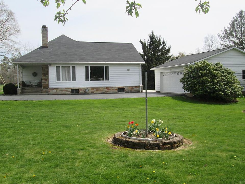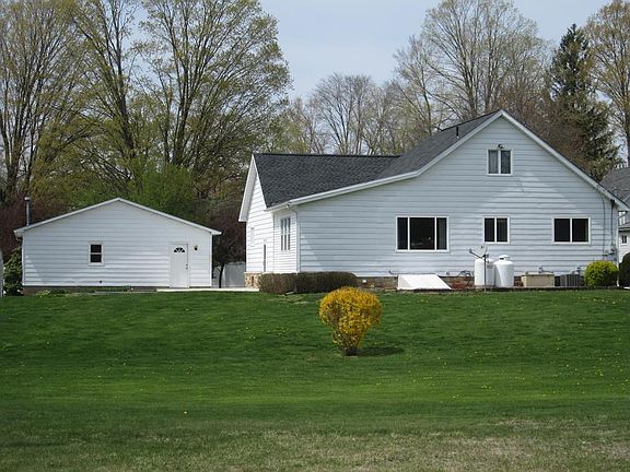 This home has been meticulously cared for by the same owners for the past 70 years who took pride in their ownership. Large corner lot includes this stone accent home and the large vacant lot to the right with a total of 1.09 acres. One story home with full walk out basement, two car heated garage with blacktop driveway and sheds / storage buildings. The large open floor plan includes a full length wood burning stone fireplace that is so warm and inviting. There are two bedrooms and another room that could be easily converted into another bedroom which is currently used as a den. The bathroom has dual sinks and marble tub surround, laundry room. Many perennials and landscaping to blend in with the home. Perfect area for a garden on the vacant lot. Property is partially fenced. Some added features includes a security system, central air and whole house generator that's separately connected to propane. Many windows with direct natural sunlight. Front covered porch and rear patio.