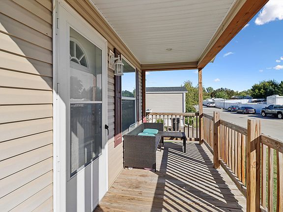 2020 Skyline 3-bedroom, 2-bath mobile home featuring a welcoming covered front porch, an open family room, and an eat-in kitchen with an island. All appliances are included. 2025-10-09