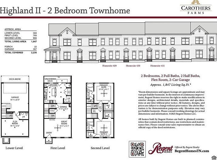 Welcome Home to popular Carothers Farm. Planned community with luxury living in your NEW Highland II 2 bedrm townhome. Features an open-concept floor plan complete with LVP on main first fl; crown molding, upgraded quartz countertops, stainless steel appliances, tile floors in wet areas. Numerous windows allow for natural light, both Bedrooms are set up like master suites. Perfect for room mate situation. Storage is ample in your 2 car garage. Spacious balcony overlooks a picturesque walkable neighborhood; Carothers Farms in Nolensville features include a playground, dog park, organic garden, walking trail & event pavilion. Easy access to I-24 & Tanger Outlets, Nashville is only 20 minutes away. Home is perfect for an owner wanting maintenance-free living or an investor looking to unlock the potential of passive income. HOA includes Hi-Speed Internet! STILL TIME TO PICK INTERIOR COLORS