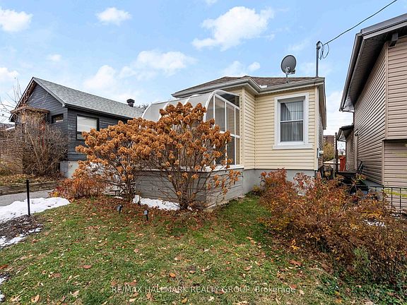 Charming 2-bedroom, 2-bath bungalow on a 36.85' x 95' lot zoned R4E, offering exceptional potential in a sought-after neighbourhood. A covered sunroom entrance welcomes you into the home, leading to a bright and inviting main level featuring hardwood floors throughout and a solid wood kitchen with ample cabinetry. The fully finished lower level offers impressive versatility with its separate rear entrance, large windows, and generous living space ideal for an in-law suite or future secondary dwelling. Outside, enjoy a spacious rear yard complete with a large storage shed. Whether you're looking to invest, downsize, or expand, this property delivers endless possibilities in a prime location. A new heat pump installed in 2022 provides efficient year-round comfort.