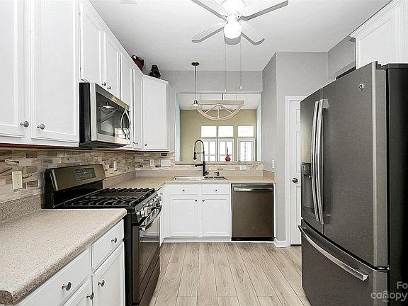 Full brick townhome located in a quite cul-de-sac very energy efficient home in Lake Wylie. Conveniently located close to schools, restaurants and all Lake Wylie has to offer. New LVP floors, Stainless Steal appliances included: microwave, gas stove, dish washer, washer and Dryer. Kitchen has goose-neck faucet and 4” Plantation Shutters throughout, brand new energy efficient hurricane proof windows installed in Nov 2022, HWH 2021, HVAC 2019 approx., new toilets, neutral paint throughout, primary is downstairs with BIG walk in shower. The garage is finished and painted and has lots of shelving at the back. Nice privacy fencing at the back patio with gate.