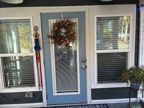 Entering the home from the front porch to the main living area ,which is bright with large windows, ceiling fan, and electric fireplace. The kitchen features a full-size refrigerator with ice maker, gas stove with self-cleaning oven, microwave, quartz counter tops, and granite sink. Included is a stackable washer/dryer.