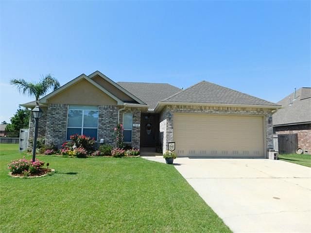 Inviting landscaping & leaded glass front door welcome you into this Quality Custom home. Gorgeous kitchen cabinets, granite counters, stainless appliances including gas stove & pantry. Modern/open plan with high ceilings. Corner gas fireplace. Master bath with garden spa tub, separate shower with double body spray; hard surface vanities both baths. Enjoy HUGE back yard from cozy back porch. Gutters, oversized garage big enough for today's SUV's/Trucks. FREE WARRANTY.