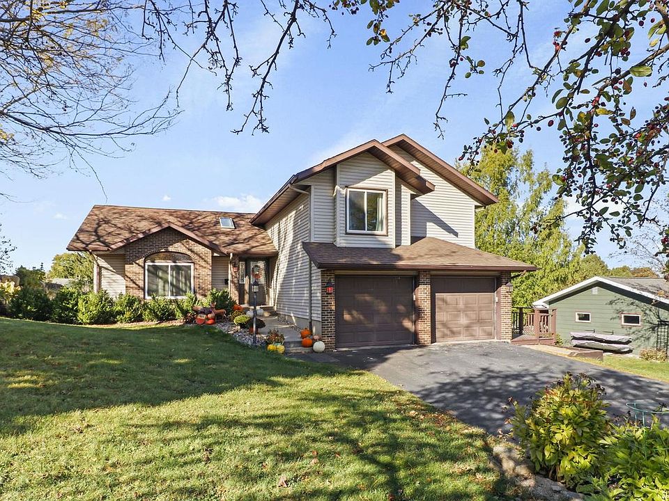 This 3/3 tri-level home boasts an excellent cul-de-sac location central to schools, groceries, and Wilson Park. Large lot includes impressive outdoor living, plus a backyard shop with 2 garage bays. Vaulted ceiling envelops the bright and airy living space. Wood-look flooring flows between formal dining and eat-in kitchen with granite breakfast bar. Bonus sunroom opens to west-facing tiered deck with pergola and privacy trellis. Stacked stone gas fireplace anchors the family room. Mudroom from 2-car garage accesses laundry, full bath, and finished LL. Valuable flex spaces suit any need, including built-in cabinetry for hobbies or office, and secluded room perfect for home theater or gym. Cathedral ceiling crowns the primary suite, including a walk-through dressing area with makeup vanity.