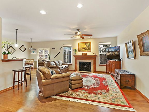 RARLEY AVAILABLE Large Meticulously Maintained 4 bedroom and 3 full bath RANCH Home in Quiet and Beautiful Prairie Walk! Nestled on a Premium Corner Lot with amazing curb appeal including an INVITING FRONT PORCH that sets the tone from the moment you arrive! Step into the 9 FT CEILING light filled foyer and feel instantly welcomed by the sunlight streaming in and gleaming off the Gorgeous BAMBOO FLOORING(2018). Every room flows effortlessly into the next. Step into the Formal Dining room perfect for ENTERTAINING those Special Guests. Move into the hallway and follow to this very unique offering of 2 PRIMARY SUITES each with ENSUITE BATHS. The Laundry room sits close by with NEWER WASHER & DRYER and a sink. Enter the CHEFS KITCHEN with Newer Backsplash, Kitchen Faucet, Stainless Appliances, 42'" Maple cabinets, Eat in dining and BREAKFAST BAR Warm yourself on those chilly evenings by a COZY GAS FIREPLACE in the Family Great Room. Don't miss the Spectacular 4 SEASON SUNROOM perfect for relaxing while overlooking the beautifully landscaped fenced in yard with a Paver Brick Patio that backs to walking trails and schools. 2 additional LARGE BEDROOMS lie on the east side of the first floor. Follow the staircase down to the Full Unfinished Basement ready for your ideas to create another large living space and STUBBED FOR FULL BATH along with an ABUNDANCE OF STORAGE. Completing this perfect home is a very clean and SPACIOUS 2 CAR GARAGE. So many UPDATES including NEW ROOF, Neutral Paint Colors, All LED Lighting and Designer Cordless Window Treatments. This home is the definition of MOVE IN READY! Also located within walking distance of the highly sought-after DISTRICT 46 Elementary and Middle schools, The Goddard School and top-rated Grayslake Central High School! Close to Prairie Trails Park, shopping, dining and entertainment. Hurry, this "TURN KEY" home won't last!