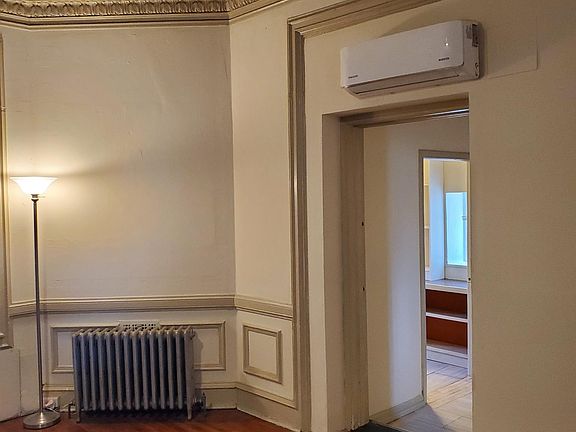 This first floor 2 bedroom, 1 bath apartment is in a Historic Germantown Mansion, but has all the modern conveniences. Renovated in 2019, there is a large open concept kitchen living room area that features stainless steel appliances including a dishwasher and washer/dryer, along with granite countertops. Just off this room is a private deck looking out on the back yard farm. The apartment features mini split heat and a/c in every room, hardwood floors, tall ceilings and numerous historic details. The building was originally built as a single family house but is now 7 apartments. The apartment also comes with two private off street parking spaces. Virtual Tour upon request.