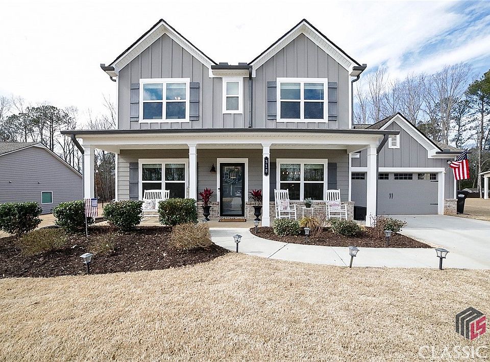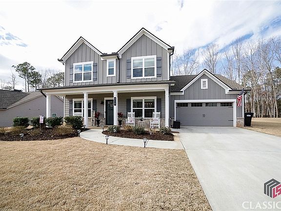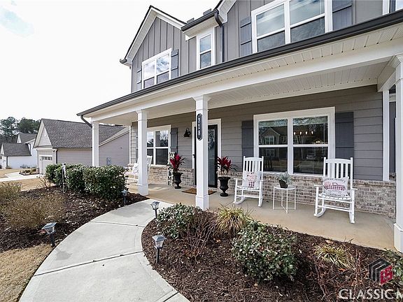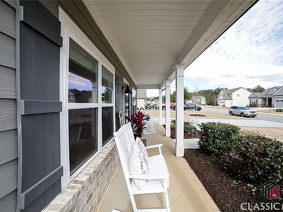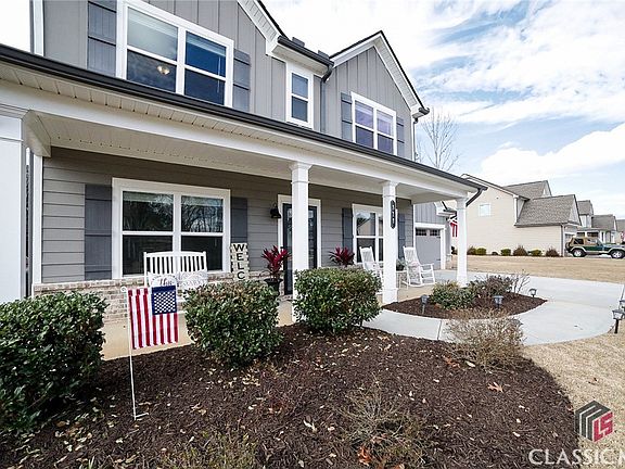 Presenting a striking, masterfully crafted home in Madison County's premier Woodbury neighborhood. Like-new, this less-than-3 yr. old home has obviously been well-maintained and exudes upgraded, custom appointments that simply add to it's designer appeal. Notable features come alive upon arrival, where the professional landscaping surrounding the covered front porch sets the stage for the incredible home to come. Once inside, you are warmly received by the gracious foyer, adorned with luxury vinyl plank floors adding warmth and durability throughout. Whether you enjoy hosting formal dinner parties, in need of a home office, or prefer a parlor-styled living room, the multi-functional spaces flanking the foyer are eager to meet any need. Each of these designated spaces have been highlighted with upgraded appointments, such as; coffered ceilings and wainscoting in the dining room and double French doors accented by parallel transom windows adorning the entrance to the formal living room/study. Centrally located and providing the ideal entertaining area is the spacious great room. Appointed with triple windows setting the room aglow, and brick accented fireplace flanked by custom trim, this stately living space is ideal for large gatherings or simply curling up by the roaring fire as you enjoy a good movie. This entertainer's delight continues with the gourmet kitchen and sunroom-styled breakfast room completely open to the great room and allowing you to interact with guest with ease. No detail missed, the sparkling kitchen was crafted with the home chef in mind. Adorned with an abundance of custom cabinets accented by subway tile backsplash and under-cab lighting, stainless steel appliances including wall oven, apron farm sink, expansive granite countertops that extend to the oversized island with breakfast bar seating, this culinary masterpiece is sure to impress. Always a desirable commodity, this concept host the perfect guest suite on the main tucked away off the rear foyer. When you're ready to unwind at the end of a long day travel up the stairs to find 3 additional bedrooms and 2 baths. A true private haven, the primary bedroom is quite oversized accommodating large furniture, offers plush carpet flooring, and lavish full bath. Boasting several upgrades, the owner's suite bath is appointed with an oversized, dual-sink vanity, tiled shower, spacious closet with shelving system and garden tub perfect for aiding in max relaxation. Each of the secondary bedrooms also offer lush carport floors, ample closet space and quick access to the hall bath. Features effortlessly extend to the exterior where enjoying a little time outdoors is made easy with the spacious, covered patio overlooking the expansive rear yard. Immaculate Condition, distinctive appeal, convenient Hull, GA location what are you waiting for?