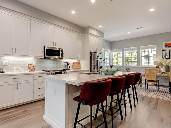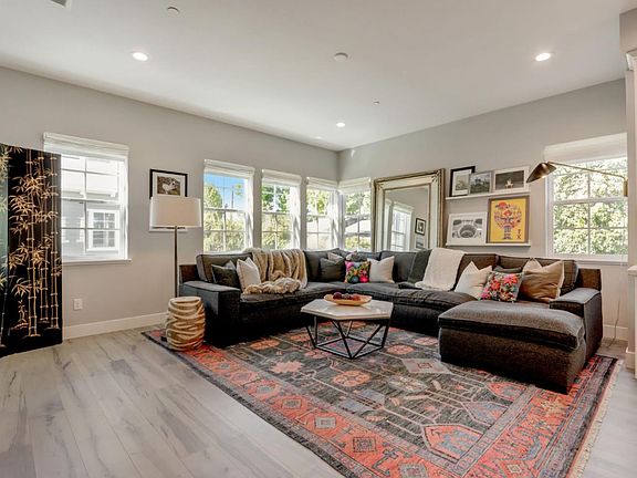 Situated in the upscale and highly sought-after neighborhood of Mountain View, this home was completed in 2021 by Classic Communities, Silicon Valley Premier Builder. First resale, this luxurious townhome sits on a desirable corner lot w/ an open layout & 10-foot ceilings. Spacious chefs kitchen w/ upgraded Stainless Steel appliances & large island ideal for entertaining. Separate dining/living area w/ built in book shelving & convenient powder room. The top floor has a primary bedroom suite and a spa like bath w/ custom designed shower. Two additional bedrooms with a full bath & laundry closet includes full size stackable washer/dryer. First floor w/ en-suite berm, perfect for guests or family. Features wood flooring, natural light, NEST, AC, window coverings, 2-car attached garage w/ an EV charger outlet. Minutes to commuting routes, Tech companies, downtown MV amenities, TOP RATED - Mt. View/ Los Altos Schools -This home is a true gem for those seeking modern luxury & versatility.